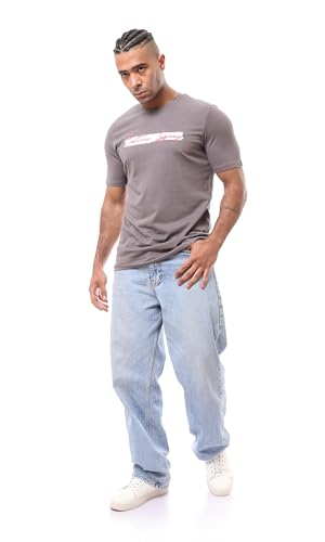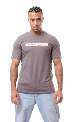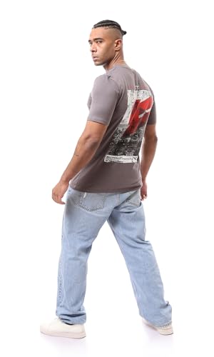Ravin - Ravin Mens Short Sleeves Front & Back Print Dark Grey Tee Modern