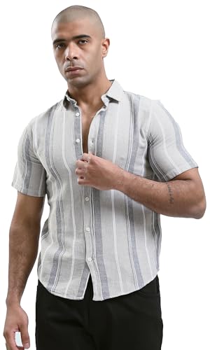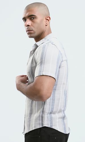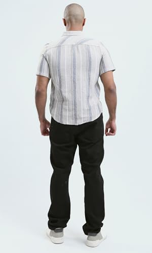 Ravin - Ravin Mens Short Sleeves Striped Beige Buttoned Shirt Modern