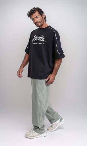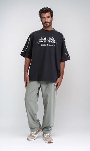 Ravin - ريفين تيشرت صيفي سهل الارتداء مطبوع بمقاس كبير للرجال - اسود عصري (عبوة من قطعة واحدة)