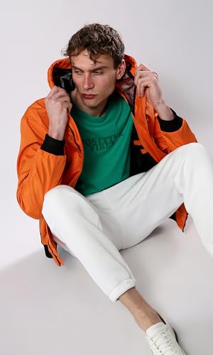 Ravin - Ravin mens Solid Orange Jacket with Mesh Hooded Neck Men Jacket