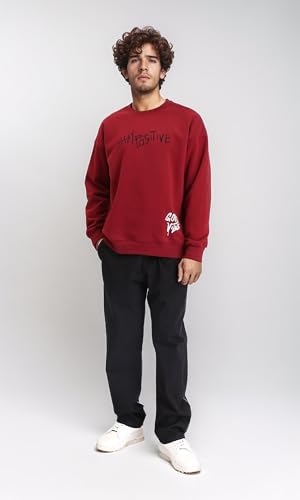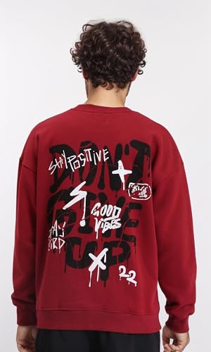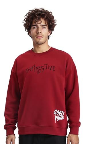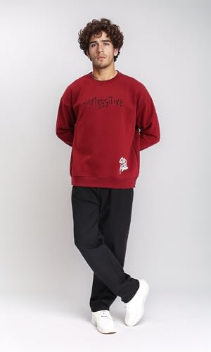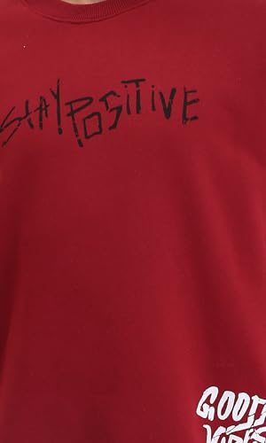Ravin - ريفين سويت شيرت رجالي بقصة عادية مطبوع عليه "Stay Positive" - احمر غامق - R213296
