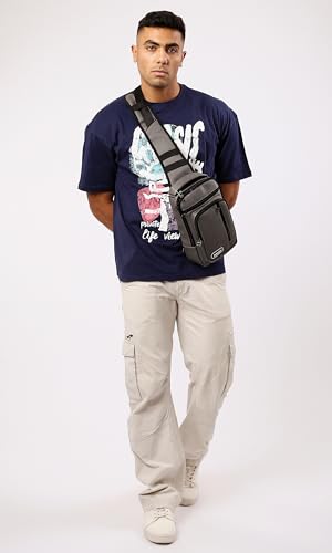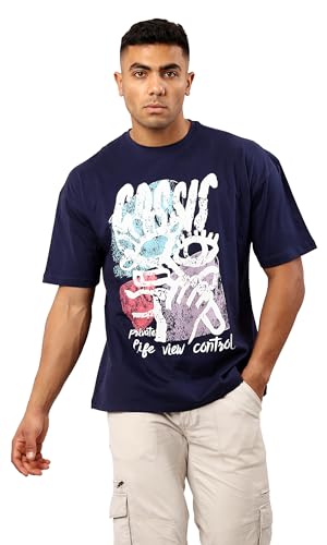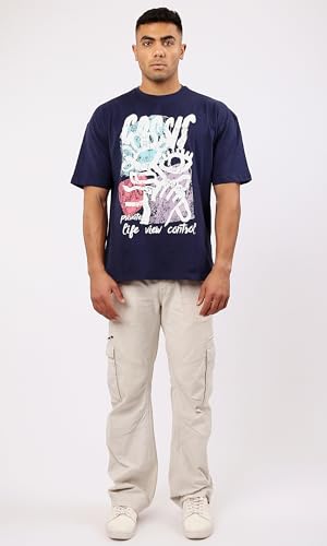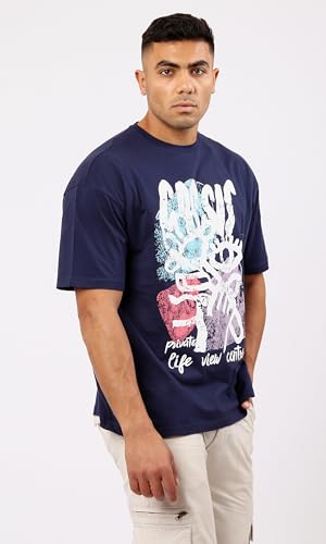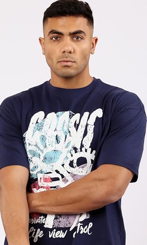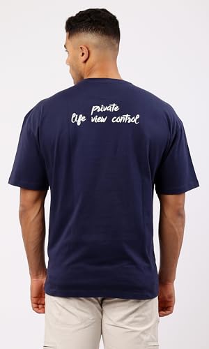 Ravin - Ravin Mens Trendy Navy Blue Slip On Printed Cotton Tee Modern