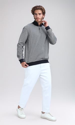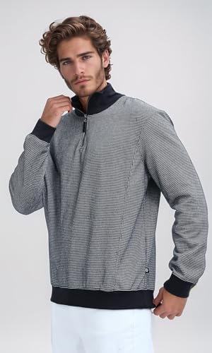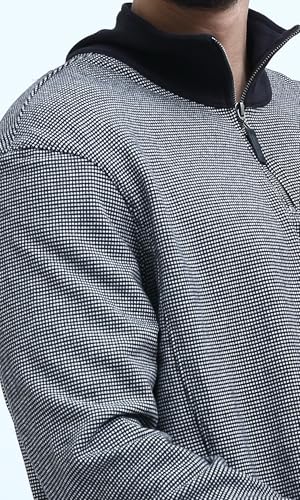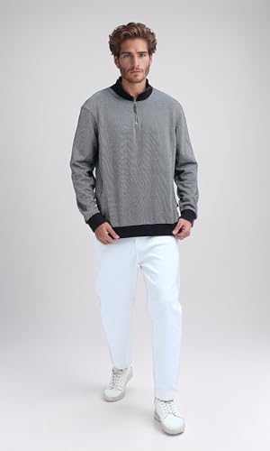 Ravin - Ravin mens Zipped Black Patterned Sweatshirt With Stand Neck Men Sweat Shirt