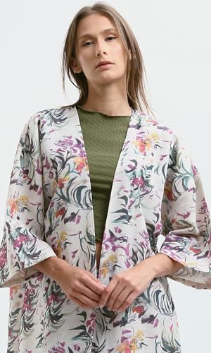 Ravin - سترة كيمونو صيفية بنمط الزهور الملونة بـ3/4 كم للنساء من ريفين