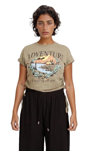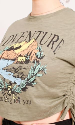 Ravin - Ravin Womens Adventue Gaphic Copped T-Shit - Olive Geen Modern