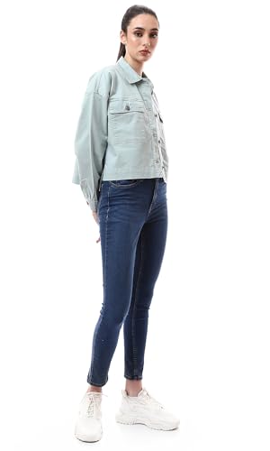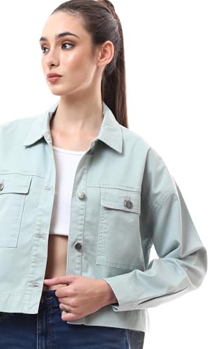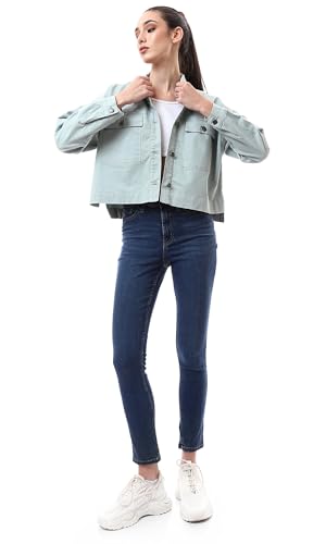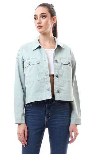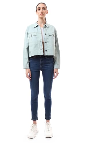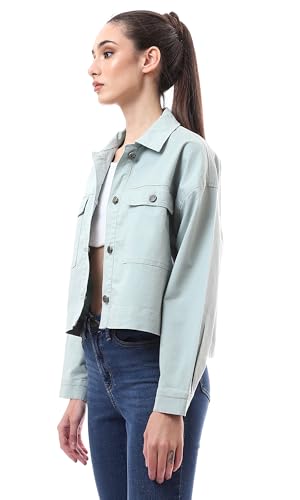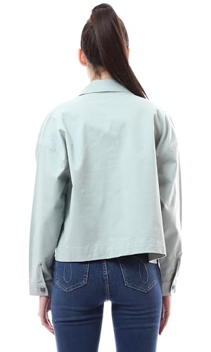 Ravin - Ravin Womens Buttoned Mint Green Short Gabardine Jacket Modern