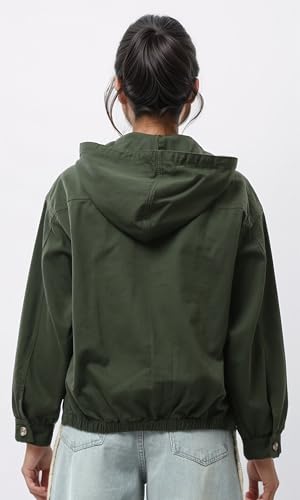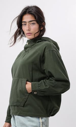 Ravin - Ravin Womens Cotton Hoodie with Kangaroo Pocket - Dark Green Women Jacket