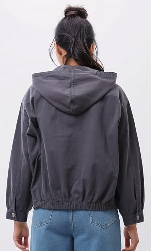 Ravin - جاكيت بغطاء للرأس مصنوع من القطن مع جيب متصل للنساء من ريفين - لون رمادي