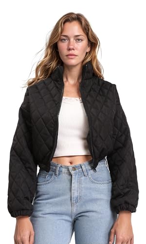 Ravin - Ravin Womens Fashionable Zipped Short Quilted Jacket - Black - R211455 Jacket