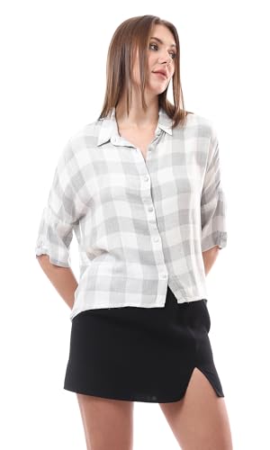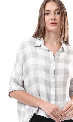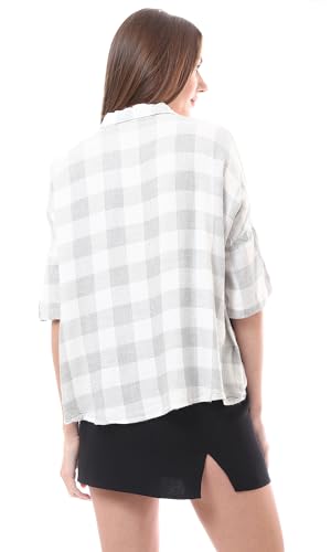 Ravin - Ravin Womens Grey & White Plaids Lightweight Summer Shirt Modern