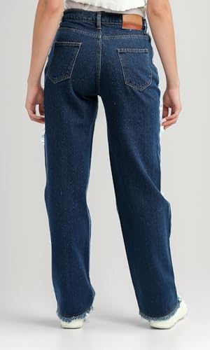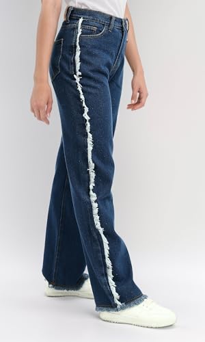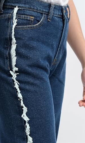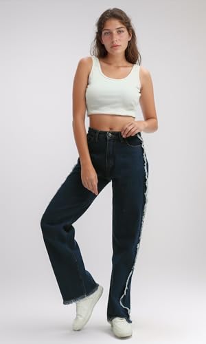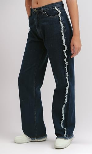 Ravin - Ravin Womens High Waist With Two-Tone Frayed At Side Loose Fit Jeans Pants