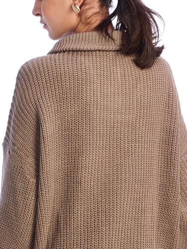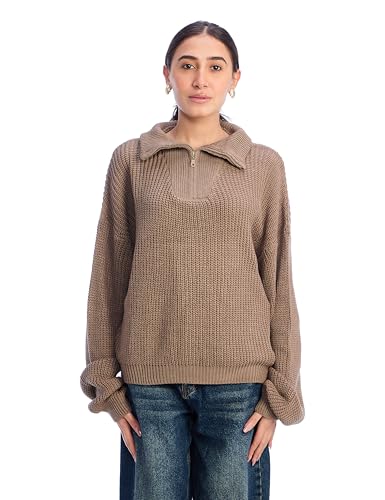 Ravin - Ravin womens Knitted Zipped Pullover with Stand Neck - Coffee Women Pullover