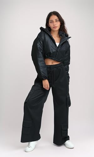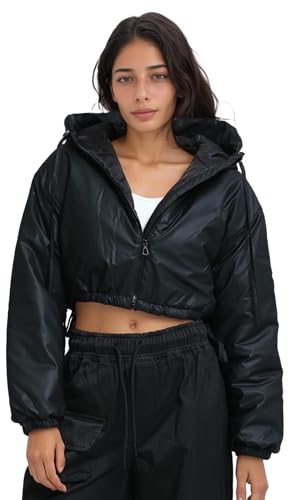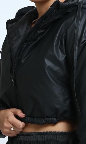 Ravin - ريفين جاكيت منفوخ قصير باكمام طويلة للنساء - اسود