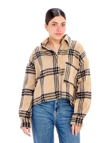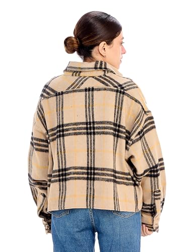 Ravin - Ravin Womens OVERSIZED CHECKED SHIRT - BEIGE Modern