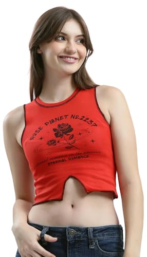 Ravin - Ravin Womens Scarlet Red Sleeveless Ribbed Cropped Top Modern