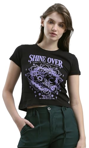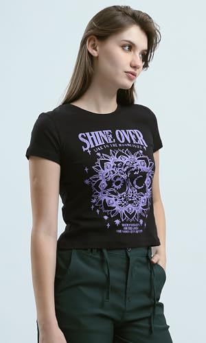 Ravin - Ravin Womens "Shine Over" Black Slip On Short Tee Modern