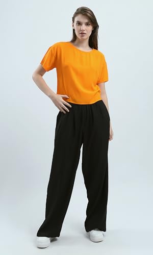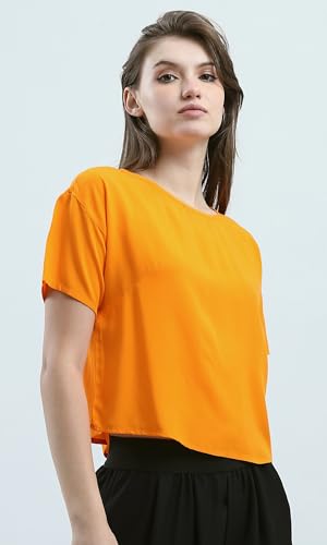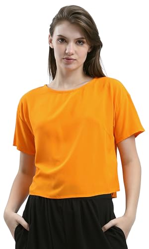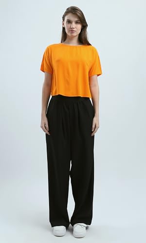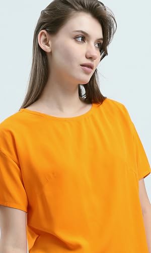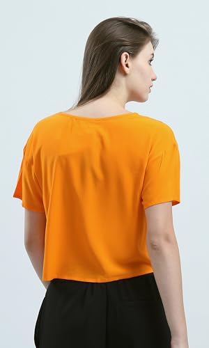 Ravin - ريفين تي شيرت صيفي قصير باكمام قصيرة للنساء بلون برتقالي فاقع عصري