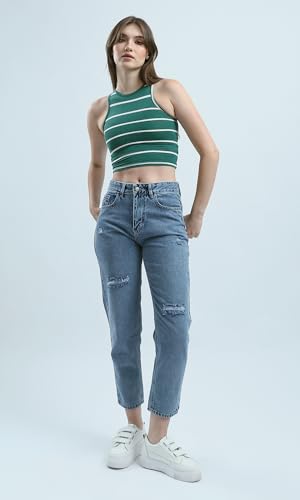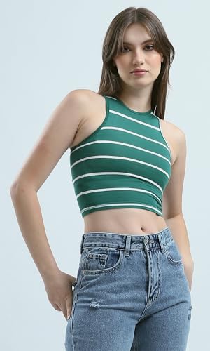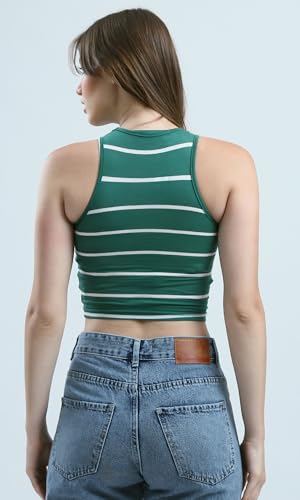 Ravin - Ravin Womens Sleeveless Striped Green Cropped Top Modern