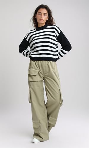 Ravin - Ravin womens Slip On Cropped Pullover - Black & White Women Pullover