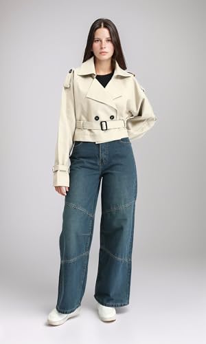 Ravin - ريفين جاكيت جلد قصير سادة بازرار للنساء - بيج - R211074 جاكيت (عبوة من قطعة واحدة)