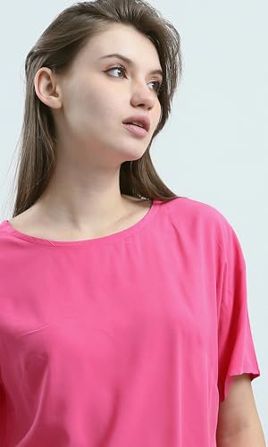 Summer Short Sleeves Solid Patterned - Fushia