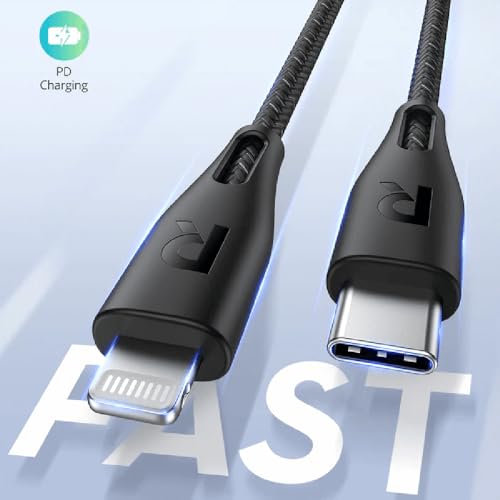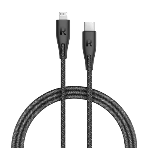 RAVPower - كابل مضفر نايلون نوع سي إلى لايتنينج بطول 1.2 متر من راف باور، لون أسود، RP-CB1017