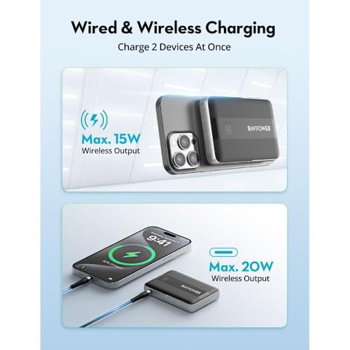 - Charge 2 Devices at Once – Supports simultaneous wired and wireless charging, making it a versatile portable power solution for your busy lifestyle.