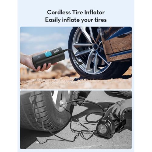 - 3-in-1 Design – Air compressor + power bank + LED flashlight in one compact solution