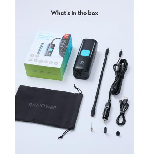 RAVPower - RAVPOWER RP-PB1233 3-in-1 Smart Air Compressor with Power Bank 60W & LED Flashlight - Black