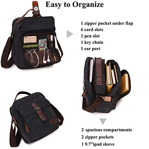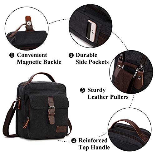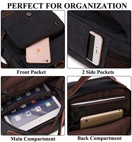 RAVUO - RAVUO Messenger Bag for Men, Water Resistant Small Canvas Satchel Bag Vintage Shoulder Crossbody Bag for Travel School and Work, Black,