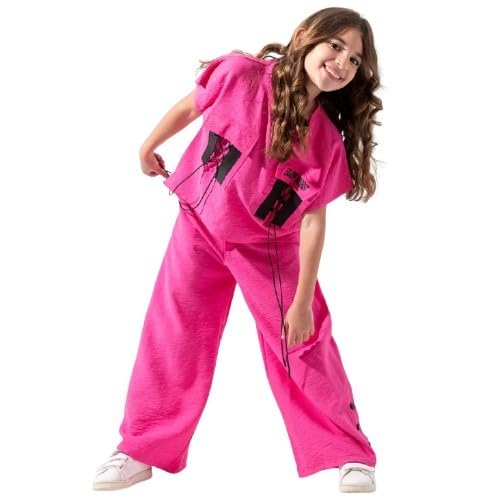 Generic - طقم صيفي للبنات من ريموندوس، بنطلون واسع وتيشرت بتفصيلة كورسيه وجيوب أنيقة 2 قطعة