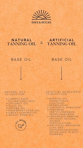 - تركيبة مرطبة: يحافظ الزيت المرطب الغني على البشرة ناعمة ونضرة أثناء عملية التسمير، مما يمنع الجفاف والتقشر
