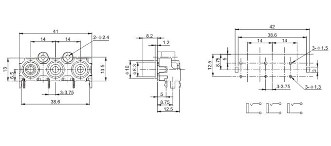 Generic - منفذ صوت أنثى ار سي ايه بعدد 3 منافذ للوحة الإلكترونية المطبوعة بوضع أفقي من قطعتين لمكبر