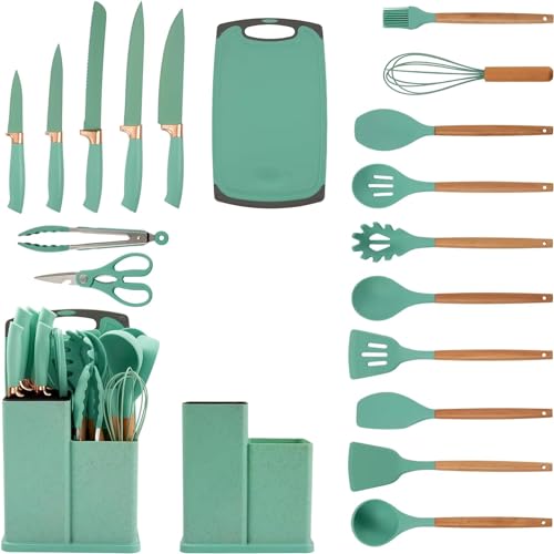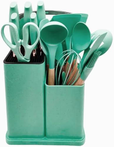 RCM Group - 19 Piece Silicone Kitchen Utensil Kit with Wood Handle - Premium Quality for Modern and Practical Kitchen! - ® (GREEN)
