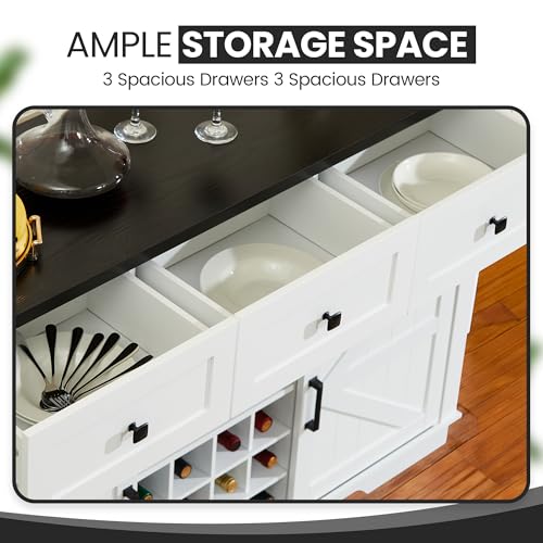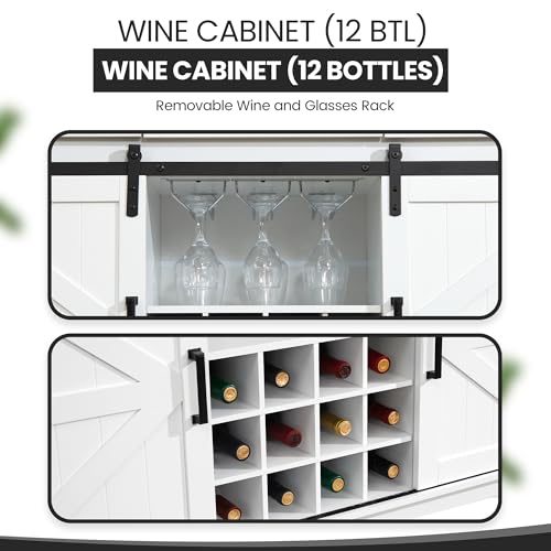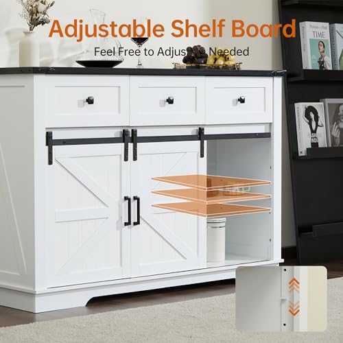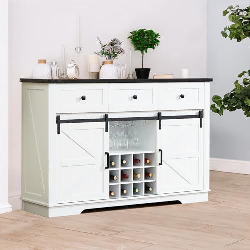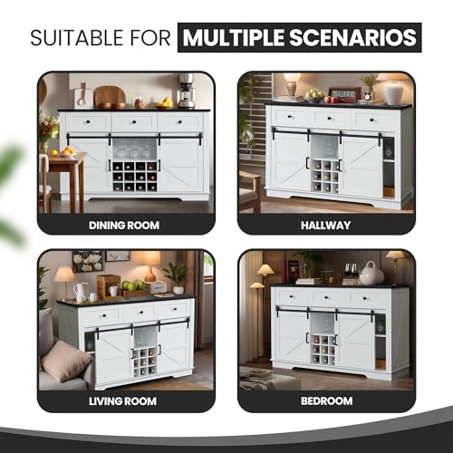 Real Relax - Real Relax Sideboard Cabinet, Farmhouse Buffet Wine Cabinet with Sliding Barn Door, Coffee Bar Cupboard for Kitchen, Dining Room, 54 Inch White