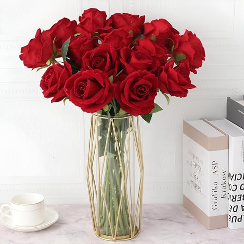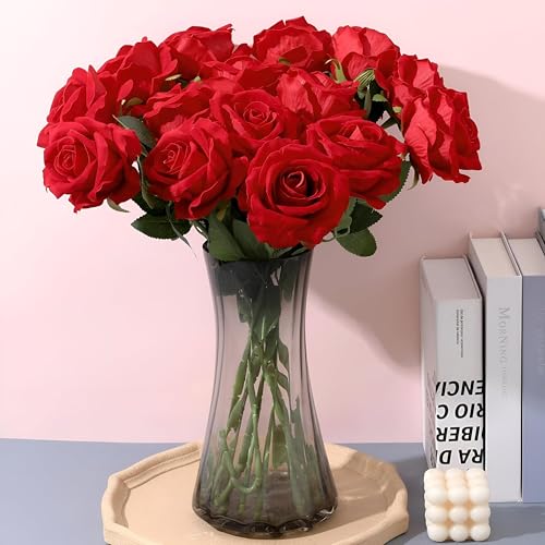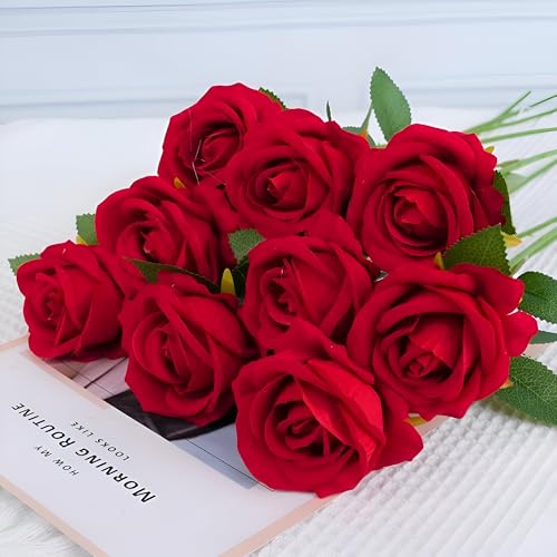 - This elegant artificial red rose adds timeless romance to any space. Unlike fresh flowers, it never wilts, requires no watering, and maintains its vibrant beauty every day, making it a lasting piece of decoration and a meaningful gift that sparkles with elegance and charm.