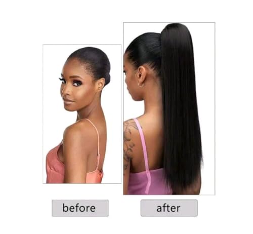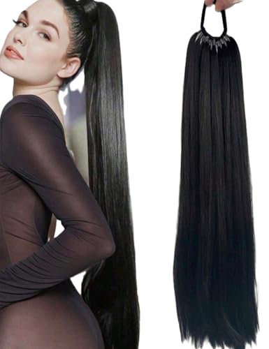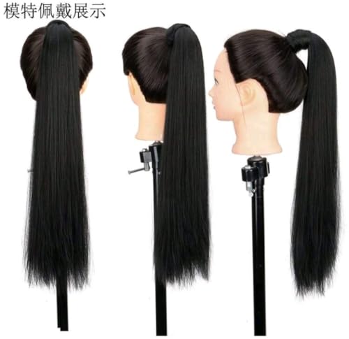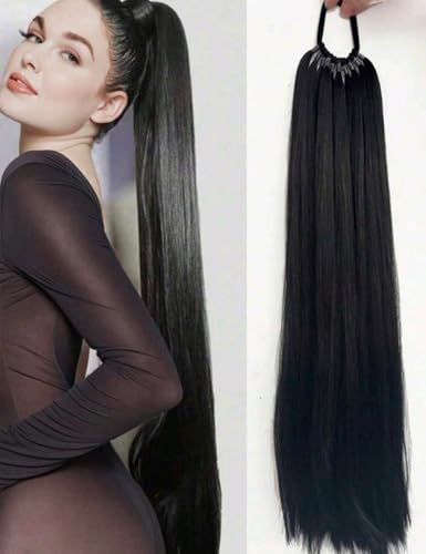 Generic - وصلة شعر مستعار واقعي مستقيم على شكل ذيل حصان، طويل منفوش للارتداء اليومي اللون : أسود