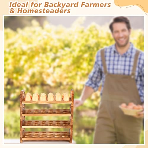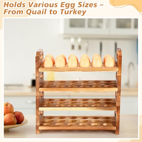 Reallnaive - حامل بيض خشبي من 4 طبقات لسطح الطاولة من ريال نايف، رف تخزين البيض الطازج من الصنوبر قابل للتكديس، رف جمع وتنظيم المطبخ وعرض بيض البط، قابل للتكديس مع 72 بيضة (بني)
