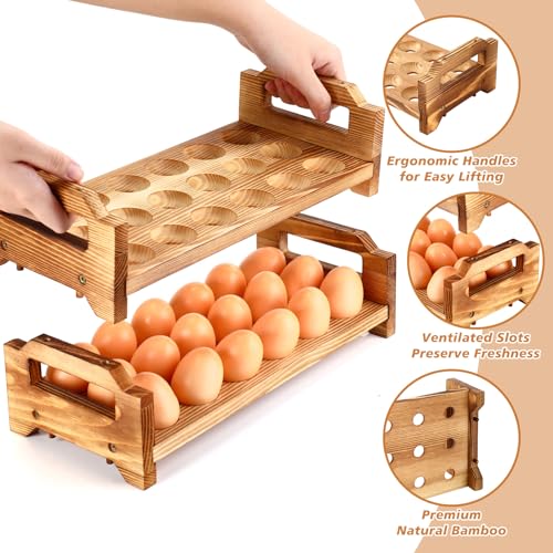 - سعة كبيرة من 4 طبقات: يتميز حامل بيض الصنوبر هذا بتصميم من أربع طبقات يحمل ما يصل إلى 72 بيضة، مما يجعله مثاليًا لتخزين البيض الطازج في المزرعة أو الاستخدام اليومي في المطبخ؛ حافظ على بيضك منظمًا ويسهل الوصول إليه