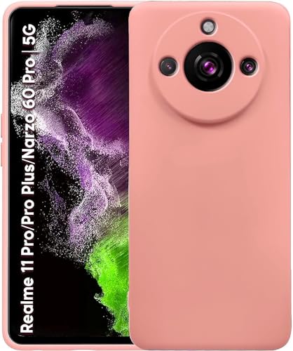 Generic - (Realme 11 Pro 5G & 11 Pro Plus) Soft Silicone Gel Rubber Shockproof Back Case Cover Matte Finish Inner Cloth Lining with Camera Protection (Pink)