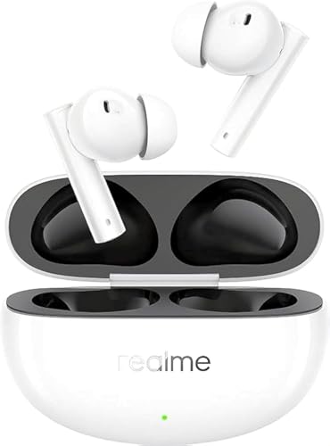 realme - realme Buds Air 5 Earbuds with Active Noise Cancellation 50dB, 12.4mm Dynamic Bass Speaker and Up to 38 Hours Playtime (White, Wireless System), In Ear