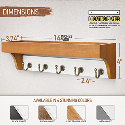 - 【TWO-COLOR DESIGN】Stylish hanging key hangers is made from selected quality solid wood and fine paint, and the 5 retro hooks will satisfy your desire to hold as many items as possible. Creative brown and white color design can be hung in any corner of the room to attract attention, become a highlight of your sweet home.