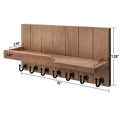 Rebee Vision - ريبي فيجن حامل مفاتيح للحائط - منظم بريد ريفي رف عائم لديكور مدخل المنزل والمطبخ مع 7 خطافات مفاتيح متينة (بني رترو)