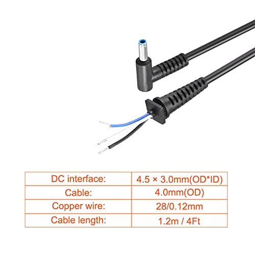 - 2-[Perfect dimension]: DC interface: 4.5 × 3 mm/0.18 × 0.12 inches (OD*ID); Cable: 4.0 mm/0.12 inches (OD); Copper wire: 28/0.12 mm; Cable length: 1.2 m/4 ft.