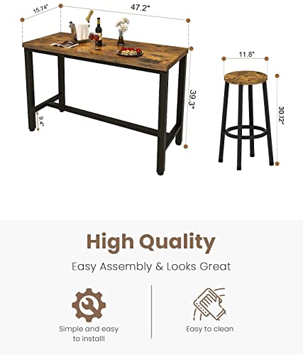 - Super Sturdy & Stable Construction - 3 Piece Pub Dining Set: This 47” Pub Table Set Is Made Of Premium Mdf And Sturdy Metal Frame, Which Is Corrosion-Resistant And Durable For A Long Lifespan. The Bar Table Made Of Thick Board And Thick Metal Which Ensures Stability And Durability. The Legs Are Super Stable On The Floor, With No Wobbling Issue At All. The Weight Capacity Of The Stool Is Up To 250Lbs