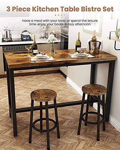 Recaceik - Recaceik 3 Piece Pub Dining Set, Modern bar Table and Stools for 2 Kitchen Counter Height Wood Top Bistro Easy Assemble for Breakfast Nook Living Room Small Space Restaurant, Rustic Brown 47"