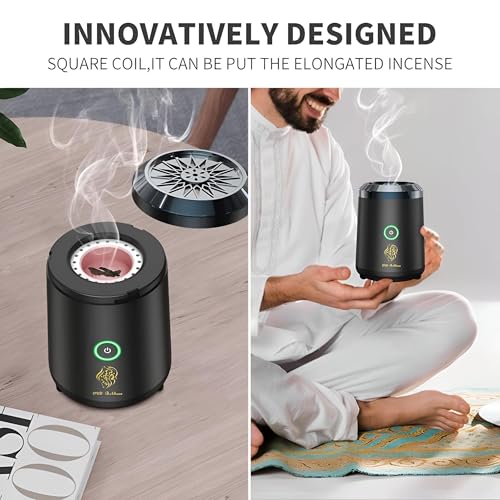 - This portable electric incense burner features a unique square coil heating element designed specifically to hold elongated Arabic bakhoor and resin pieces, ensuring optimal heat distribution and consistent fragrance release without the need for charcoal or open flames.