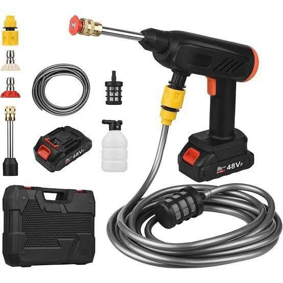 - High Pressure Spray Gun for Watering Medicine Spray or Carpets Wash with 2 Batteries Rechargeable Cordless Car Wash and Accommodation Waterproof Car Wash 48V High Pressure Car Washing Machine Rechargeable Electric Water Spray Gun with 2 48V Battery Battery Enjoy Easy Carwashing, Gardening, Carpeting, Floor Wash with ease