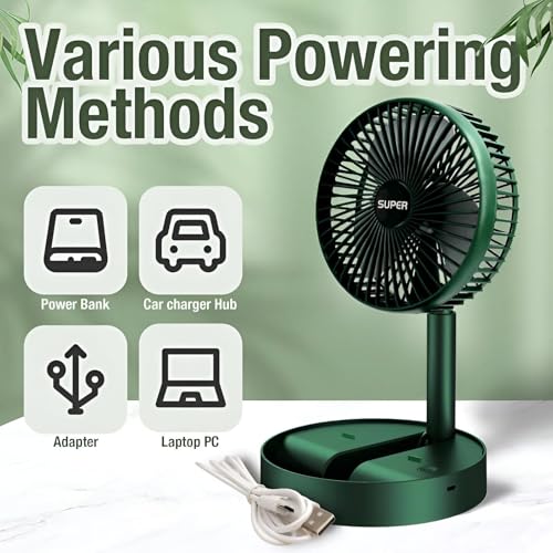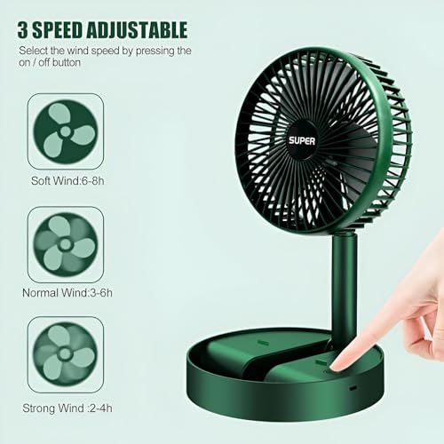- Easy to carry: the fans are lightweight and foldable, and can be placed in your backpack/bag/desktop/car without taking up space. Rechargeable portable fan can be used in camping, office, Beach, Yard, home.