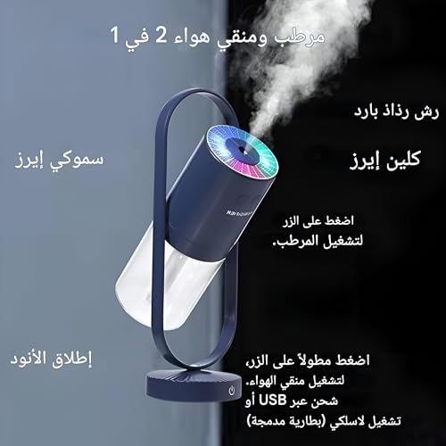 Generic - Rechargeable Humidifier - 2-in-1 Air Purifier and Humidifier with Adjustable Angles, 260ml Water Tank, USB Charging, LED Lights with 7 Colors for Bedroom, Car, Home, Office Use